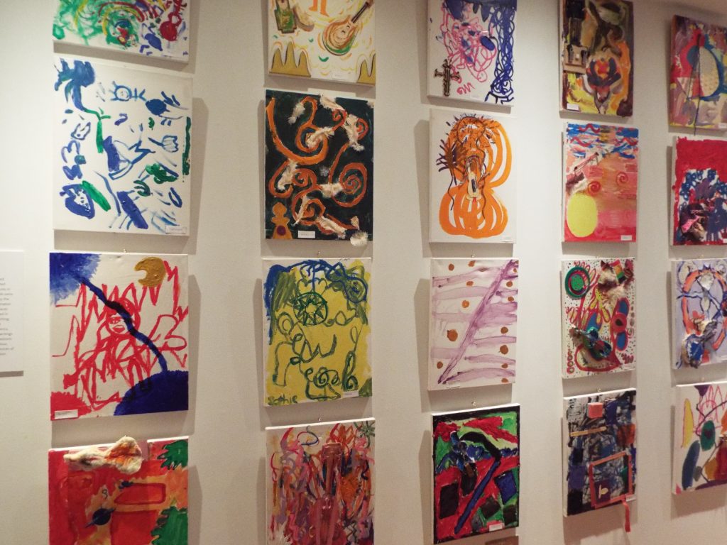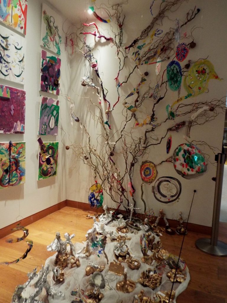 Story Makers is an embodied approach to language development, an arts based process immersing the body in learning from bodily felt experience. Unique gallery spaces and collections in Oxford Museums are the inspiration for sensory experiencing and physical exploration to inspire creative communication. In Story Makers everyone is an artist. Children and adults see their own unique work unfolding using artistic expression across a wide range of artistic media and through embodied enactment of images. Deeply felt experience is portrayed in gesture, movement and visual imagery. Stories emerge through the artistic imagery, capturing the range of words and phrases emerging enabling the imagination to flow into new narrative, dialogue and poetry, bringing new understanding and conveying the sensory learning about the Museum Collections.